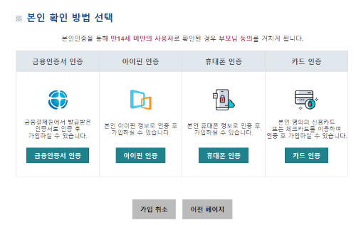 원하는 인증 방법을 선택해서 인증을 진행해 주세요.